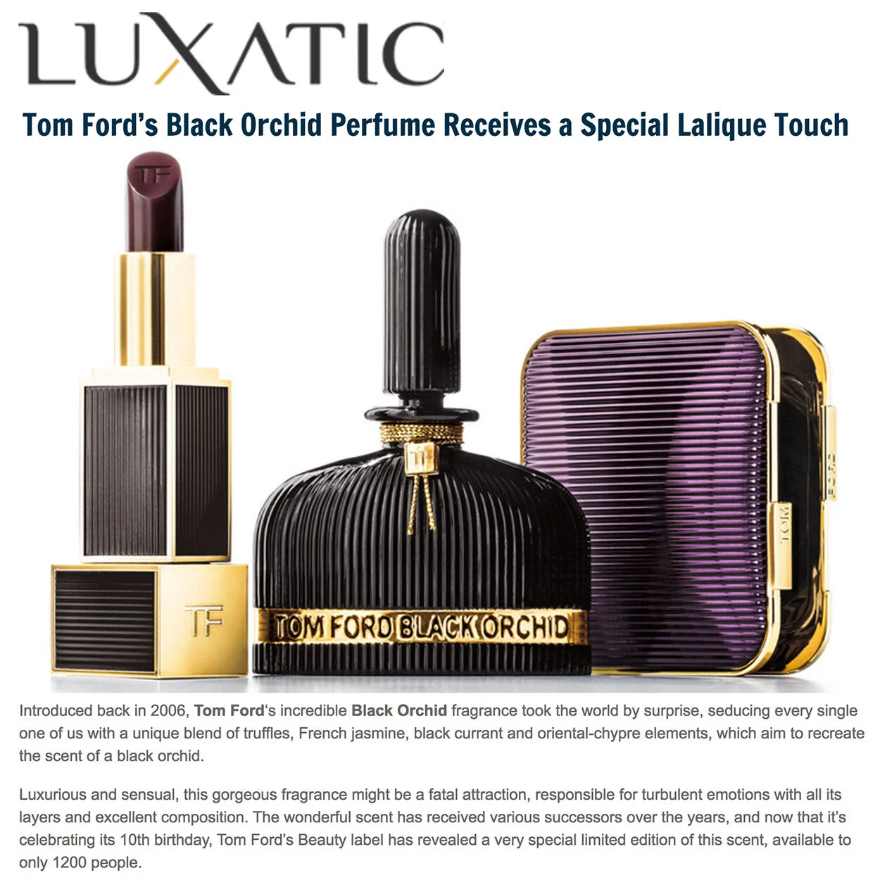 Although Rene Lalique’s history was intimately linked to perfumery, it was his granddaughter, Marie-Claude Lalique, who launched the first eponymous fragrance for the brand in 1992, LALIQUE de LALIQUE. This initiative was the combination of genuine perfume creation with the unique know-how of LALIQUE’s crystal glassmaking. LALIQUE is the only brand that creates a new crystal bottle each year for the launches of each men’s and women’s fragrance lines. In addition, LALIQUE is the only brand that creates a limited edition crystal perfume bottle each year, inspired by a Rene Lalique design or motif. Since 1994, the creation of these limited, signed and numbered editions of collector’s flacons have become a highly anticipated annual event.